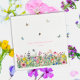Boêmio, estival e elegante, este guardanapo de chá de noiva apresenta um campo colorido de delicadas flores silvestres com borboletas, abelhas e joaninhas.
