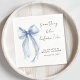 Guardanapos elegantes para chá de noiva com uma bela aquarela de um laço coquete azul claro, "algo azul antes de eu fazer" em uma fonte caligráfica chique, e o nome da noiva e a data do chá em letras modernas simples.