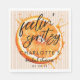Guardanapos Personalizados Chá de Noiva Amor à Primeira Spritz - Guardanapos divertidos com listras bege preppy e uma fatia de laranja em aquarela. A frase "feelin spritzy" é escrita à mão em fonte preta. Personalize adicionando o nome da noiva e a data do chá de noiva. Perfeito para chá de noiva de verão, festas de chá de noiva na piscina e chá de noiva temático de coquetel Aperol Spritz.