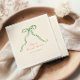 Os guardanapos brancos de chá de panela com um belo arco desenhado à mão num estilo divertido e lúdico, acompanhados por uma fonte casual e escrita à mão que captura perfeitamente o entusiasmo e a alegria da ocasião. Os guardanapos vêm num encantador esquema de cores de verde-floresta e coral, evocando sentimentos da natureza, calor e felicidade. Estas cores complementam perfeitamente o design lúdico e reforçam ainda mais o humor festivo da ocasião.