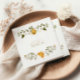 Esta design suave e elegante apresenta uma abelha de mel sorridente aninhada numa vila floral, rodeada de verde e ouros sutis. Uma escolha gentil e graciosa para a noiva ser, perfeita para festas de jardim e eventos de primavera.