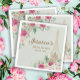 Celebre sua noiva em um brinde de chá de panela no tema de Paris e comemoração à bolha. Guardanapo de papel personalizado do chá de panela elegante para a celebração francesa/parisiense. Uma torre de ouro Eiffel está rodeada de rosas rosa e brancas e folhas de eucalipto e folhagem verdes. A cor de fundo do verde-menta é personalizável para qualquer cor desejada. O texto personalizado inclui o nome da noiva-a-ser e sua data de chá.