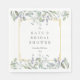 Folhas bonitas de chá e lilás caem sobre uma moldura dourada elegante que envolve os detalhes do seu chá de noiva em texto clássico e sofisticado. Criado por Thisisnotme©