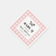 Um padrão de xadrez de gingham cor-de-rosa-rosa, suave e esbranquiçada, molda enquadra texto personalizado neste guardanapo de coquetel de papel personalizado. Edite facilmente todo o texto e você pode até alterar a cor do plano de fundo.