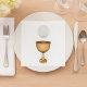 Este design é um cálice. O cálice é ouro e tem um pedaço de pão acima dele. Este design de chalice parece excelente neste Papel Napkins
