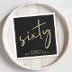 Os guardanapos pretos chicos para a sua 60ª festa de aniversário com "sessenta" mostrados num grande guião dourado.