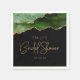 Estes guardanapos de papel chá de panela, glamourosos, chicos, apresentam uma imagem aquática de um geode agado em tons de verde caçador com realces falhos de brilho dourado. As palavras Chá de panela aparecem na falsa brilha dourada em uma letra decorativa moderna de escrita manual. Personalize-o com o nome da noiva a ser e a data em texto dourado.