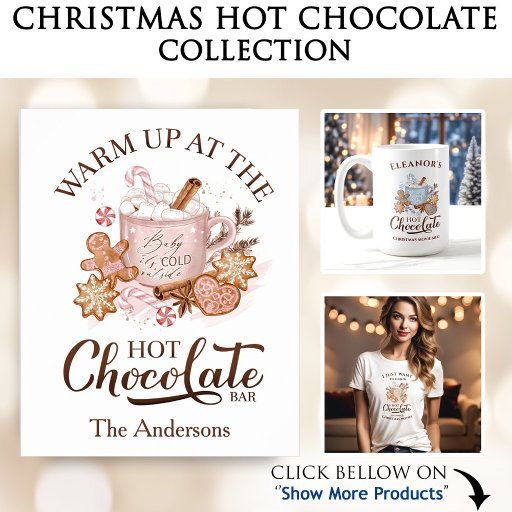 Chocolate Quente de Natal e biscoitos de gengibre em guardanapos de papel azul e marrom. Design de Natal elegante e fofo. Personalize facilmente o nome. - Kate Eden Art