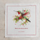 Entretenimento com seus convidados com este charmoso design de guardanapo de festas de festas de festas mostra uma bela aquarela tema de Natal, beija-flor cercada por um buquê de flores de inverno em um fundo branco. Tipografia vermelha personalizável.