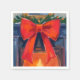 Christmas Fireplace | Red Bow Merry Watercolor Holiday Paper Napkins