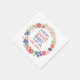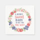 Esses guardanapos de papel apresentam morangos, mirtilos e framboesas adoráveis entrelaçados com delicadas coroas florais e videiras de frutas. As suaves tonalidades pastéis e o texto caprichoso escrito à mão, "Um Bebê Muito Doce a Caminho!", criam uma estética doce e alegre.