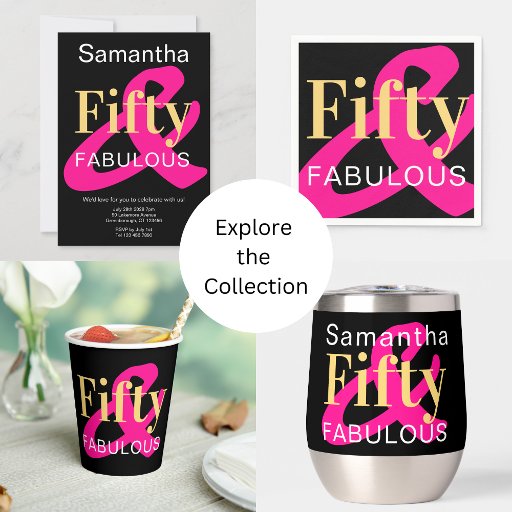 Esta é uma brilhante e moderna design de 50 anos com um motivo de tipografia fabuloso e cinquenta. Está na tendência do ouro preto e rosa quente com tipografia na moda. Perfeito para uma festa de festa de aniversário 50ª. Para alterar o texto, basta usar o botão personalizar. Se você quiser alterar a cor ou a fonte, dê uma olhada na ferramenta de edição. Para obter ajuda com a personalização, produtos correspondentes ou para um email de design personalizado: ursuladawnmoon@gmail.com