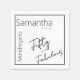 Faça uma declaração ousada com esse guardanapo moderno para festa de aniversário “Cinquenta e Fabuloso” com um impressionante fundo de retrato em preto e branco com uma tipografia manuscrita superdimensionada.