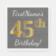 Guardanapo De Papel Cinzas, Faux Dourado 45º Aniversário + Nome Person