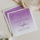 Estes guardanapos de papel festa de formatura chic, elegantes apresentam uma borda brilhante e púrpura e púrpura e fundo ombre púrpura. Personalize-os com o nome de convidado de honra em um roteiro de escrita manual roxo, com seu ano de classe abaixo na fonte sans serif. Ideal para segundo grau ou formandos.