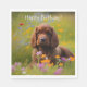 Estes guardanapos de papelão apresentam um spaniel fofo num campo de flores silvestres.