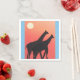Estes guardanapos brancos são desenhados com a minha representação de duas girafas silenciadas contra um pôr do sol laranja.