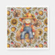 Um Único Napkin Para A Época De Queda, Patterado Em Girassóis, Perus, Abóboras, Cornucopia Em Caçadores E Laranjas Com Centro De Espantalho