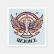 Colorida Cruz Agnel Wings Rejoice, este design cristão é feliz e alegre e apresenta uma Cruz Colorida com Agnel Wings e texto dizendo, "Realegria".