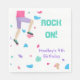 Vamos! O muro de subida com porcas coloridas está em textura de aquarela divertida. O texto diz "Rock On" com espaço para a aniversariante ou a mensagem do menino abaixo. Guardanapos perfeitos para uma festa de aniversário temática sobre escalada de rocha/