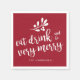 Guardanapos de papel vermelhos de Natal apresentam "coma, beba e fique muito alegre" em tipografia cursiva com o nome da família personalizado. Envie-me um e-mail @ JMR_Designs@yahoo.com se precisar de ajuda ou tiver algum pedido especial.