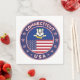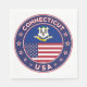 Crachá de Connecticut. Emblema de Connecticut com bandeira de Connecticut e bandeira americana, forma arredondada