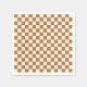 A brown and white checkerboard pattern fills the image. The square tiles are evenly spaced, creating a uniform and orderly geometric design.