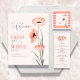 Estes elegantes guardanapos minimalistas do casamento de 4,75 x 4,75" apresentam papoilas de aquarela em um fundo listrado de coral junto com os nomes dos casais do casamento.