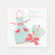 Um guardanapo de papel chá de panela da cozinha divertido com avental bolinhas azul e branco e utensílios de cozinha amarrados com um arco rosa. Graphics ©http://myclipartstore.com
