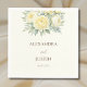 Elevem a sua mesa de casamento com o papel de casamentos peonial, Napkins, perfeito para um casamento com o jardim de verão. Apresentando uma arte floral vintage, este design apresenta rosas creme e manteiga amarelas e peônias com folhas verdes sage, colocado sobre um fundo elegante de creme mole, os nomes do casal e os detalhes do casamento são exibidos em fontes modernas e escritas em mocha mole, acrescentando um toque de eterno. Estes guardanapos de papel na moda trazem sofisticação e charme para a vossa celebração, criando uma capa de mesa elegantemente coesa.