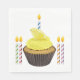 Um cupcake amarelo com velas. Esta design parece realmente eficaz nestes Napkins de Papel