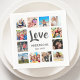 Create your own personalized 12 photo collage, napkins with your custom images on a simple modern white background. The napkins face also features your family name, established year and a "Love" handwritten script. Add your favorite photos, designs or artworks to create something really unique.