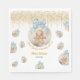 These adorable paper napkins feature a cute watercolor gingerbread boy nestled inside a glass Christmas bauble, topped with a festive faux gold glitter confetti. The perfect finishing touch for a winter baby shower, holiday gender reveal, or Christmas cookie party.