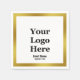 Há uma imagem no centro dos guardanapos. Carregue o arquivo de logotipo para criar um guardanapo de promocional personalizado. O guardanapo é branco com uma falsa borda de ouro. (Não existe folha de alumínio no produto.) Sob o logotipo, há duas linhas de texto de exibição para uma mensagem personalizada, como o nome do evento e a data do evento.