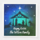 Cena de Natividade em azul simples, verde e preto com texto branco para você personalizar e estrelas brancas. Janto Padrão Napkin.