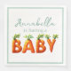 Estes guardanapos de chá de fraldas personalizados apresentam um tema fofo, neutro em relação ao gênero em tons de verde de sábio suave. A palavra "Bebê" é impressa como cenoura ilustrada através do centro. Eles são perfeitos para um chá tema de Páscoa ou Primavera.