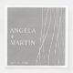Pequenos detalhes fazem uma grande diferença... luz de velas, luz de humor, e até fraldas de papel delicadas que são personalizadas e personalizadas. Esses modernos guardanapos de janto minimalistas apresentam os nomes da noiva e do noivo com uma design de linha fluente em cinzas de prata. Dimensões: 6,5" l x 6,5" w (dobradas), 3 rostos Impressos em cor de cheio à sua escolha de guardanapos brancos ou naves Estampados ou guardanapos padrão disponíveis Vendidos em quantidades de 50