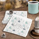 Um padrão de aquarela sem costura com pequenas casas confortáveis aninhadas nas passagens de neve entre ramos de árvore negras e folhas é o design perfeito para um Natal em casa. Disponível em duas paletas coloridas de ventre, esta versão apresenta tons de lacre, azul de aço e bege macio. Fornecemos o texto opcional 'Saudações da Época' e você pode personalizar este guardanapo de papel de Natal festivo com seu nome e data. Procure ID985 para ver todos os produtos coordenadores com este adorável padrão de Natal.