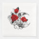 Contorno, lua da crista mecânica com engrenagens, decorada com rosas vermelhas com caules e folhas pretas em fundo branco. Steampunk