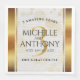 Celebre o 3º aniversário de casamento de couro com esses guardanapos elegantes! Letras elegantes com confetes hexagonais dourados em um fundo de couro branco luxuoso bordeado por folha de ouro adicionam um toque memorável para essa ocasião especial e marco. Personalize com os nomes do casal, datas de casamento e até 2 mensagens.