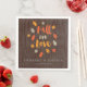 Adicione um toque especial à sua festa de noivado de outono, chá de casais, janto de ensaio, ou casamento, com estes guardanapos de outono. Esta design tipográfica apresenta a frase "apaixonar-se" em letra estilo de letra de letras de pincel e folhas em queda, em laranja, castanho e amarelo/ocre de mostarda num fundo escuro de madeira. Personalize com seus nomes e data de casamento.