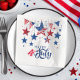 Este guardanapo de papel brilhante apresenta uma design divertida do Dia da Independência de estrelas decorativas vermelhas, brancas e azuis em um arco gracioso sobre uma bela caligrafia que diz 'Feliz 4 de julho'. Perfeito para aquelas festas e churrascos à medida que celebramos a ocasião. Procure ID1103 para ver todos os produtos de coordenação com este design alegre.