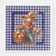 Um Simples Papel Azul De Gingham, Simples Mas Elegante, Que É Desenhado Com Espantalho De Queda Com Uma Cesta De Maçãs