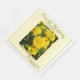 Enquanto comemoram o seu primeiro aniversário de casamento, entretenham seus convidados com este elegante guardanapo decorado com um cravo amarelo no centro contra um fundo amarelo pálido e personalizados em letras douradas.