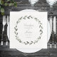Uma coroa de oliveira minimalista pintada em aquarelas, com seus nomes e dentro numérico de data de casamento.