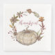 Estilo russo do campo de Ação de Graças, guardanapos de papel, apresentando uma abóbora com uma sugestão de brilho, cercada por uma coroa de folhagem da queda de terra. Bonito aquarela com um roteiro "agradecido".
