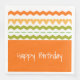 Os guardanapos de janto temáticos de aniversário felizes com um padrão decorativo em laranja e verde, o fundo branco pode ser alterado para qualquer cor, como a faixa laranja larga de sotaque, o texto pode ser personalizado ou o texto pode ser removível.