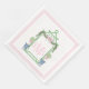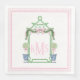 Este design de guardanapo tem um design de pré-disquete Chinoiserie com uma armação verde de bambu pagoda com uma garland e um arco rosa e dois topiários em potes de Chinoiserie. Você pode personalizar com seu monograma.