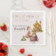 Esses guardanapos encantadores apresentam um tema clássico de histórias de folclore e conto de fadas em um fundo cor-de-rosa suave. Uma ilustração de uma princesa em frente ao seu castelo é uma figura em baixo à direita. O pai dela, o rei, está na frente dela. Um pequeno príncipe sapo está ao seu lado. A frase "Uma vez por vez" é impressa no topo em uma fonte de ouro branco.