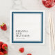Um design clássico moderno para casamentos ou noivados, este guardanapo de papel tem um quadro duplo em azul marinho com um fundo branco. Os nomes da noiva e do noivo e a data do casamento são mostrados no canto inferior esquerdo da design. O texto justifica-se por um efeito contemporâneo. Personalize o texto com seus nomes e data. Nota: estes guardanapos de papel estão disponíveis em 3 tamanhos: tamanho janto (mostrado aqui), tamanho do almoço e tamanho do coquetel.